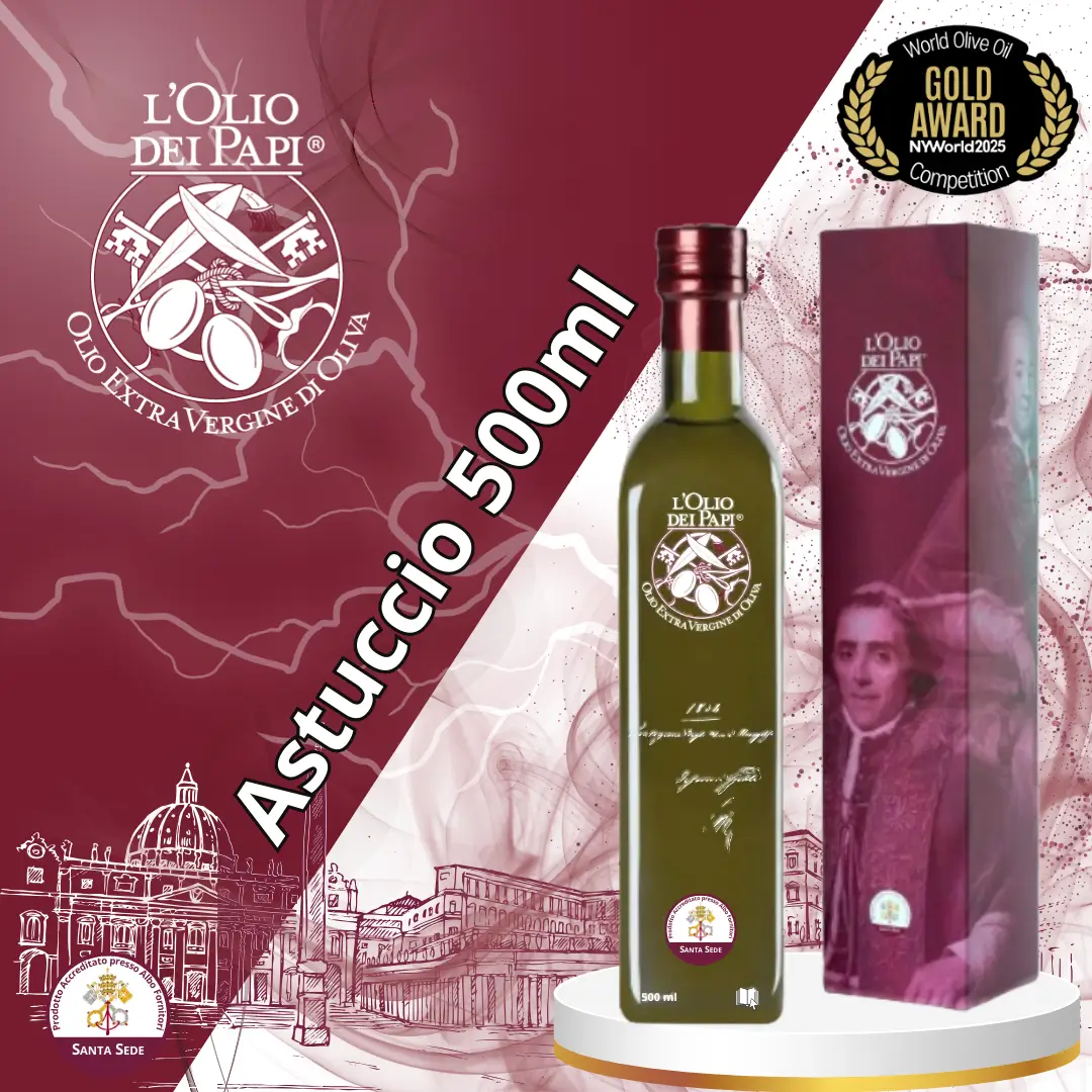 L’Olio dei Papi 500ml: Elegante OLIERA DECORATA stampata su Vetro è un olio extra vergine di oliva italiano di categoria superiore, estratto a freddo da olive selezionate. Presentato in un astuccio esclusivo, è il regalo perfetto per gli amanti della cucina di qualità ed ideale come gadget e Bomboniere Gastronomiche.